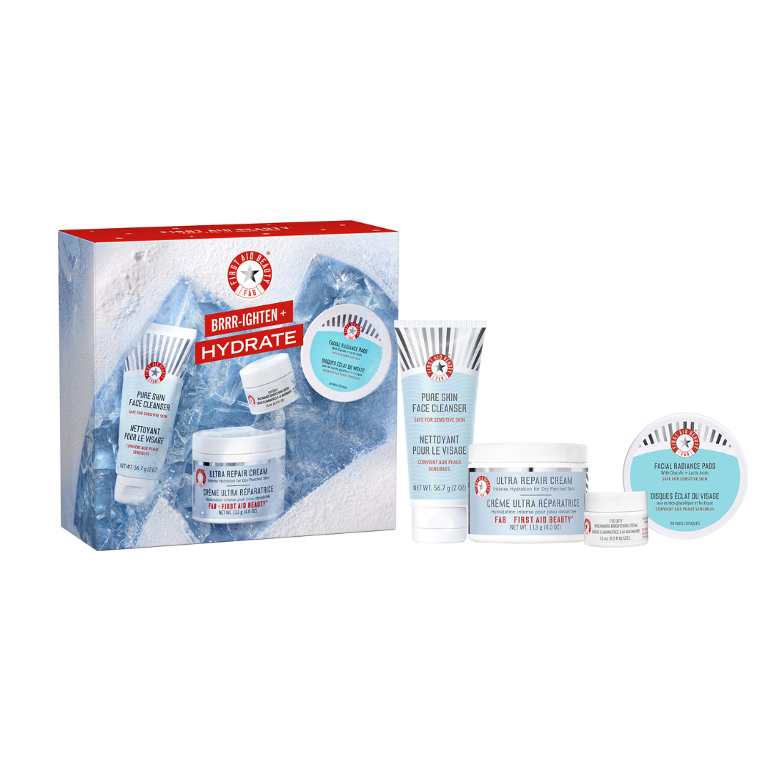Birtu upp á daginn og nældu þér í vetrarnauðsynjar! Settið innheldur fulla húðrútínu - hreinsaðu með ilmefnalausum Pure Skin Face Cleanser og svo Facial Radiance Pads sem skrúbba á mildan hátt með glycolic + lactic sýrum. Gefðu húðinni raka með Ultra Repair Cream og birtu upp augnsvæðið með Eye Duty Niacinamide Brightening Cream.