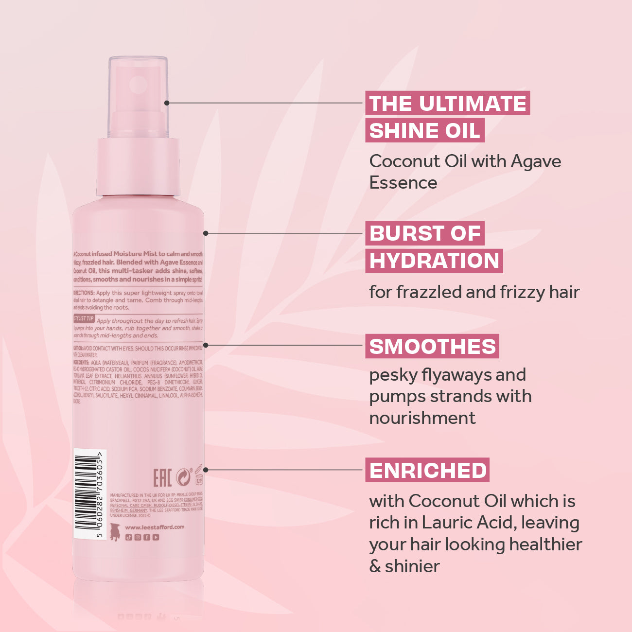Kókossprey sem gefur hárinu innspýtingu af raka til að róa, temja úfna lokka og endurlífga hárið. Létt formúlan nærir, hjálpar til við að greiða úr flóka og skilur hárið eftir silkimjúkt og glansandi.