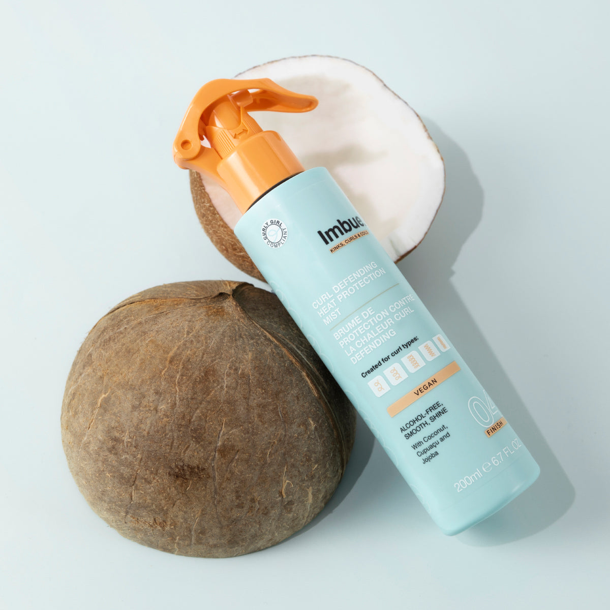 Spreyjaðu hitavörninni í hárið áður en þú notar hitamótunartæki til þess að vernda krullurnar þínar. Fyrir aukinn raka mælum við með að nota vörnina með Leave-In næringar spreyinu okkar.