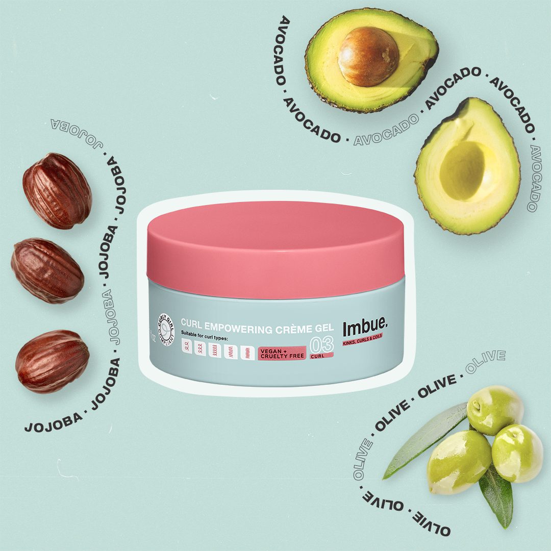 Krullu valdeflandi gel kremið okkar er sérstaklega hannað fyrir krullur á bilinu 3A til 4C og inniheldur aðeins CGM vottað hráefni. Það inniheldur kókoshnetu, cupuaçu, jojoba og sætar möndlur sem gefa hárinu hámarks raka til þess að ýta undir þitt náttúrulega krullumynstur án þess að hárið verði úfið/frizzy. Gel kremið sameinar mýkjandi eiginleika krems og mótunar eiginleika gels auk þess að gefa endingargott miðlungs/sterkt hald með léttri áferð. Fagnaðu og virtu mátt krullanna þinna með Imbue. Þetta snýst nefninlega ekki um að stjórna krullunum, heldur um að valdefla þær.