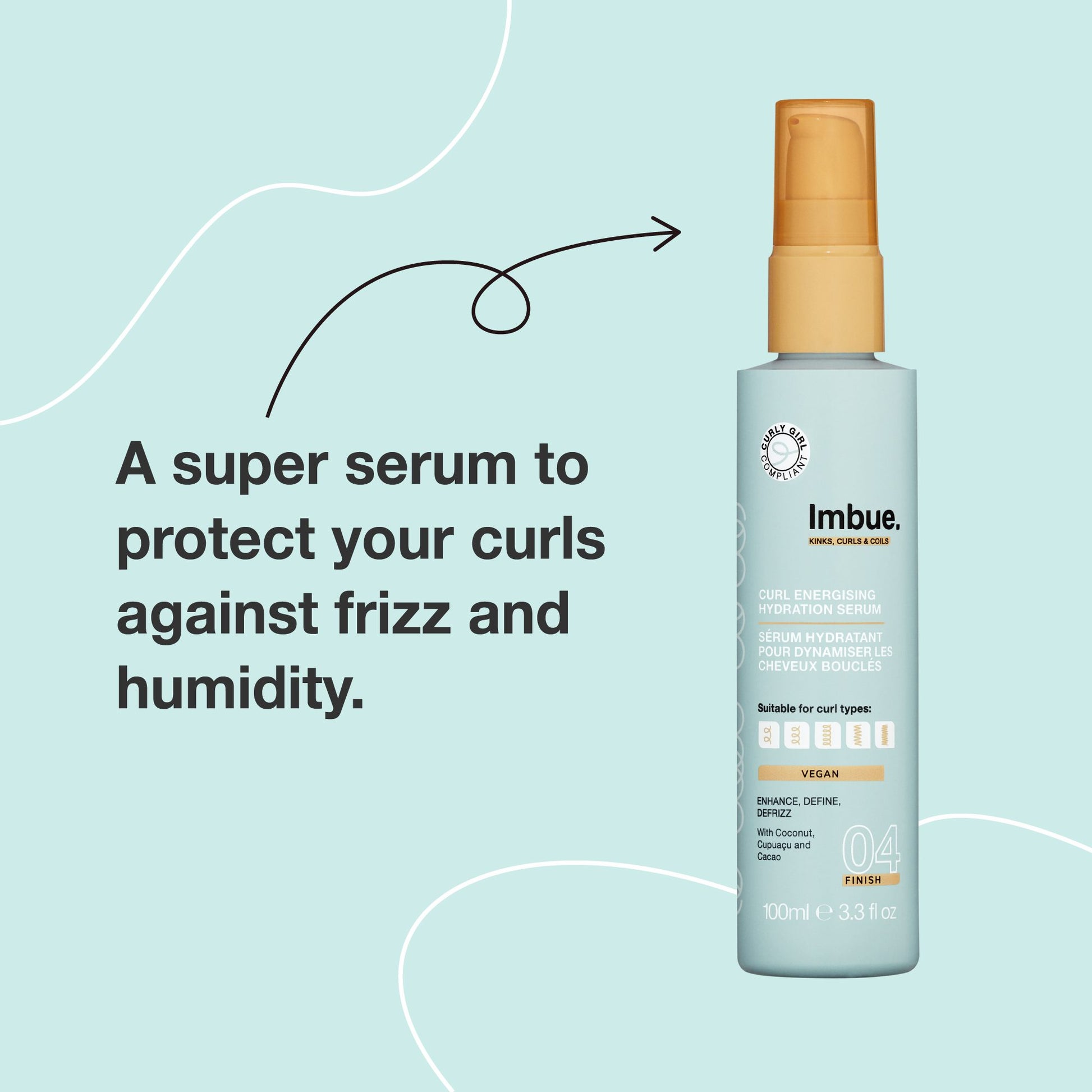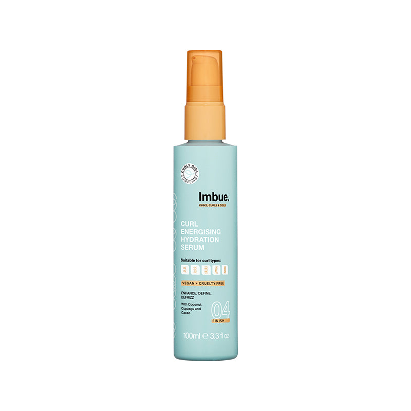 Létta krullu orkugefandi serumið okkar er sérstaklega hannað fyrir krullur á bilinu 3A til 4C og inniheldur aðeins CGM vottað hráefni. Það inniheldur kókoshnetu, cupuaçu og kakó til þess að sleppa fram óbeisluðum náttúrulegum krullum. Ver hárið gegn raka og „frizz“ þannig að krullurnar halda forminu lengur. Serumið er einnig hægt að nota í þurrt hár til þess að gefa annars, þriðja eða fjórða dags krullum orkuskot. Það lengir líftíma krullanna og heldur hárinu eins og á degi tvö… jafnvel þó það sé dagur 5. Það er líka frábært til að slétta og móta óþekku krullurnar sem leggjast ekki alveg eins og restin. Fagnaðu og virtu mátt krullanna þinna með Imbue. Þetta snýst nefninlega ekki um að stjórna krullunum, heldur um að gefa þeim orku.