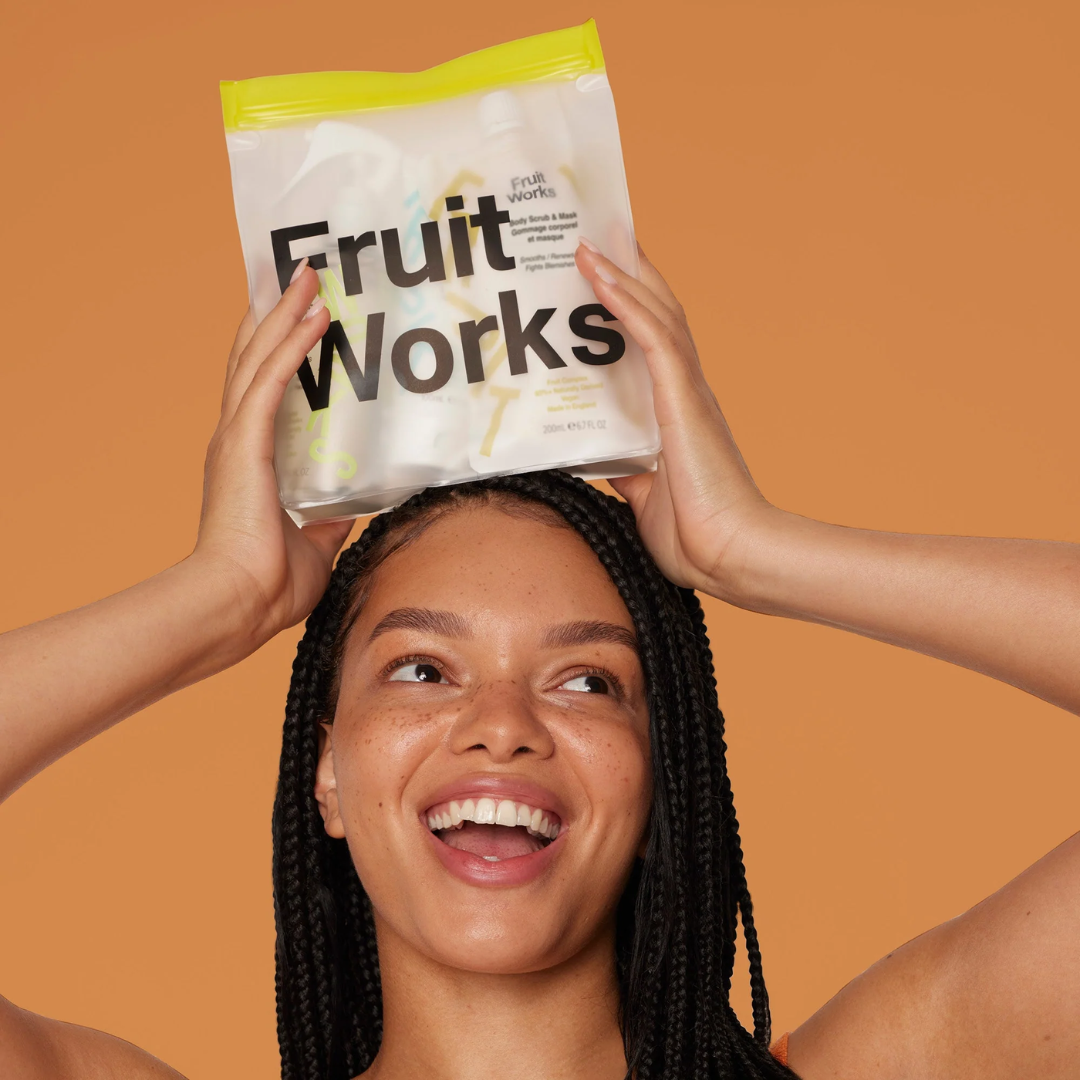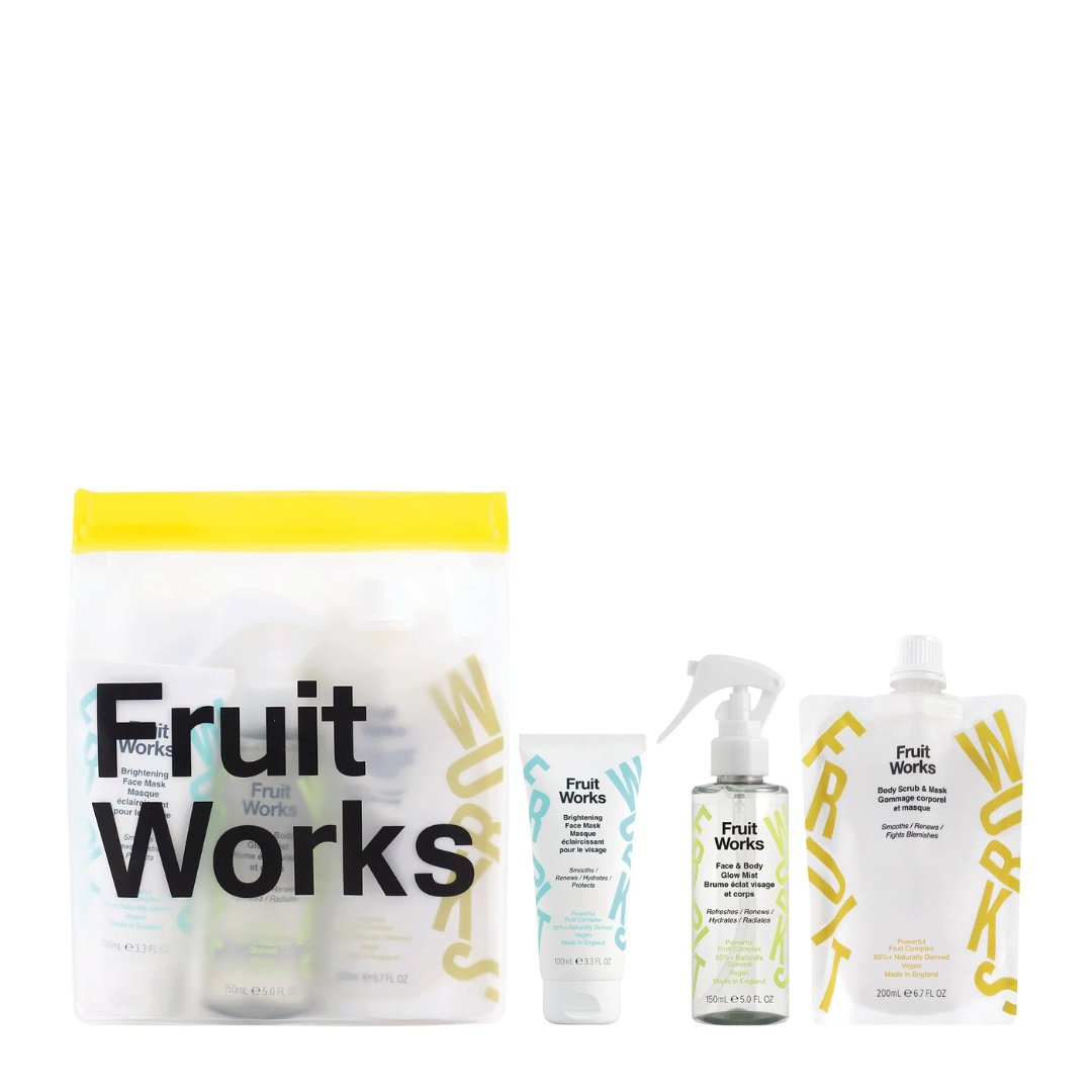 Þetta sett snýst allt um ofur-ljómandi húð og inniheldur þrjár af öflugustu vörum Fruit Works í fullri stærð fyrir ljóma frá toppi til táar!