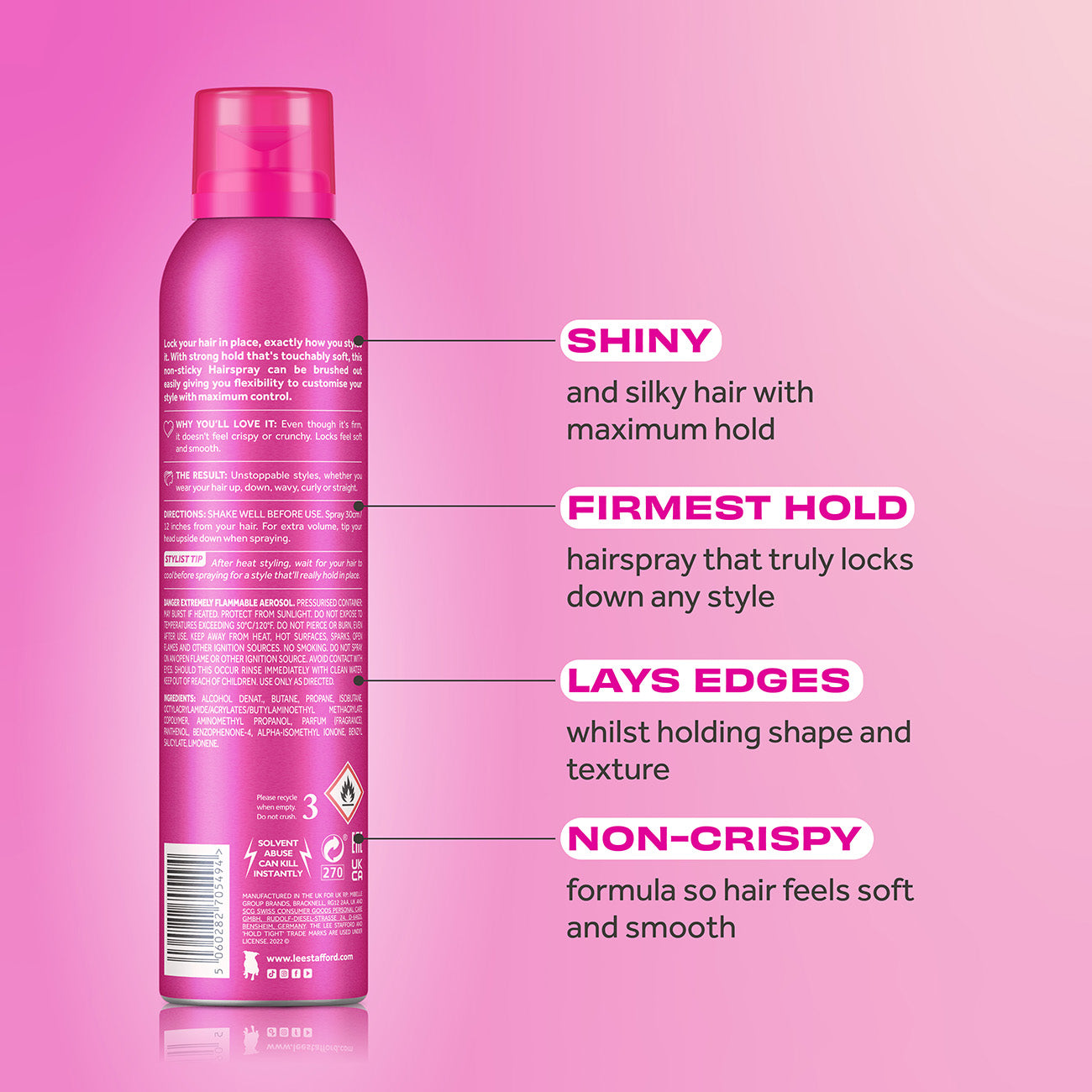 Ef þú vilt halda greiðslunni á sínum stað, prófaðu þá þessa elsku. Spreyið gerir nákvæmlega það sem stendur á brúsanum án þess að gera hárið stíft. Notaðu því spreyið til þess að fá endingargott hald og fallega áferð.