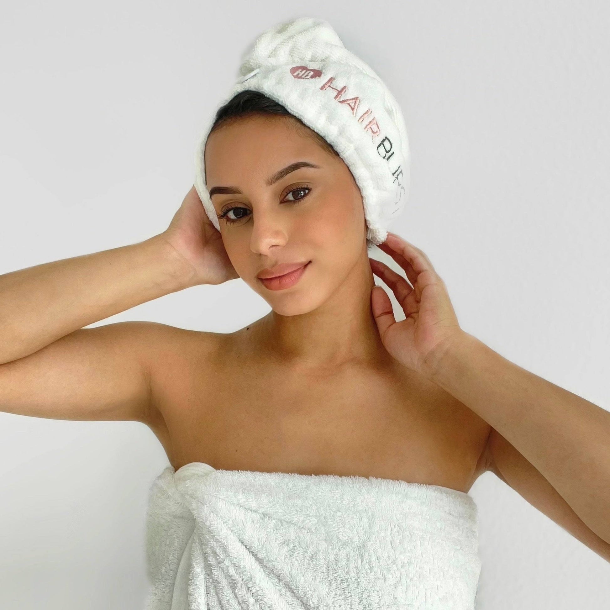 Hárinu er snúið inn í handklæðið, eftir að það hefur verið þvegið, og síðan fest með litla teygjubandinu að aftan. Rakadrægt örtrefjaefni handklæðisins dregur í sig vatn án þess að þurrka hárið of mikið og því þarf styttri blásturstíma, sem þýðir minni skemmdir á hárinu. Mjúkt efnið umvefur hárið og veldur ekki núningi, FRIZZi eða broti.