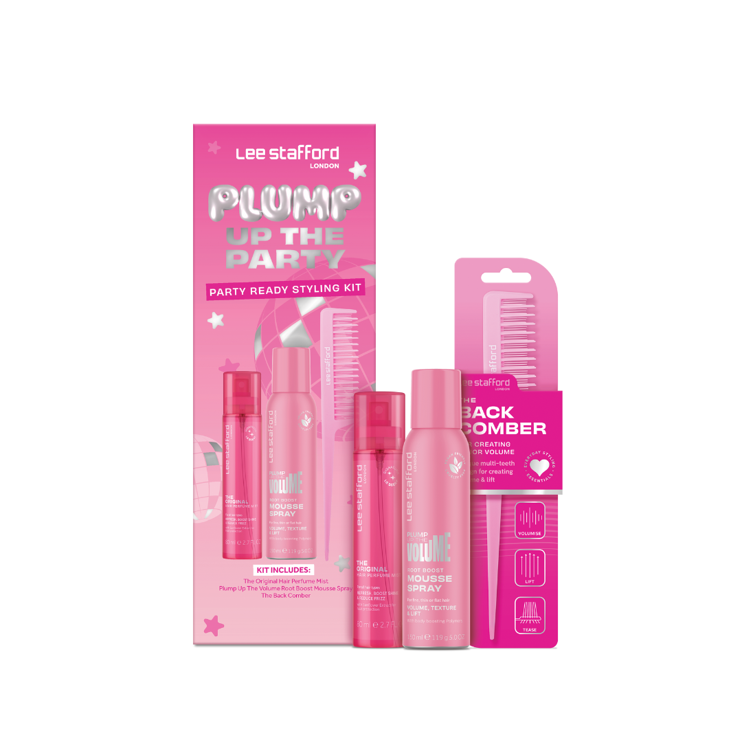 Blástu alvöru lífi í partýgreiðsluna þína! Partýsettið frá Lee Stafford er fullkomið til að skapa stórar og eftirtektarverðar greiðslur. Byrjaðu með Root Boost Mousse til að fá geggjaða lyftingu í rótina og gott hald, notaðu síðan The Back Comber til að túbera aðeins undir hárið og greiða fram himinháa lyftingu. Settu svo lokapunktinn með Hair Perfume Mist sem bætir glans, heldur frizz í skefjum og skilur hárið eftir með dásamlegan ilm alla nóttina.