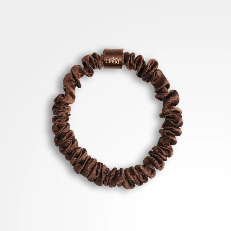 Silver Cloud Satín Skinny hárteygjur Chocolate