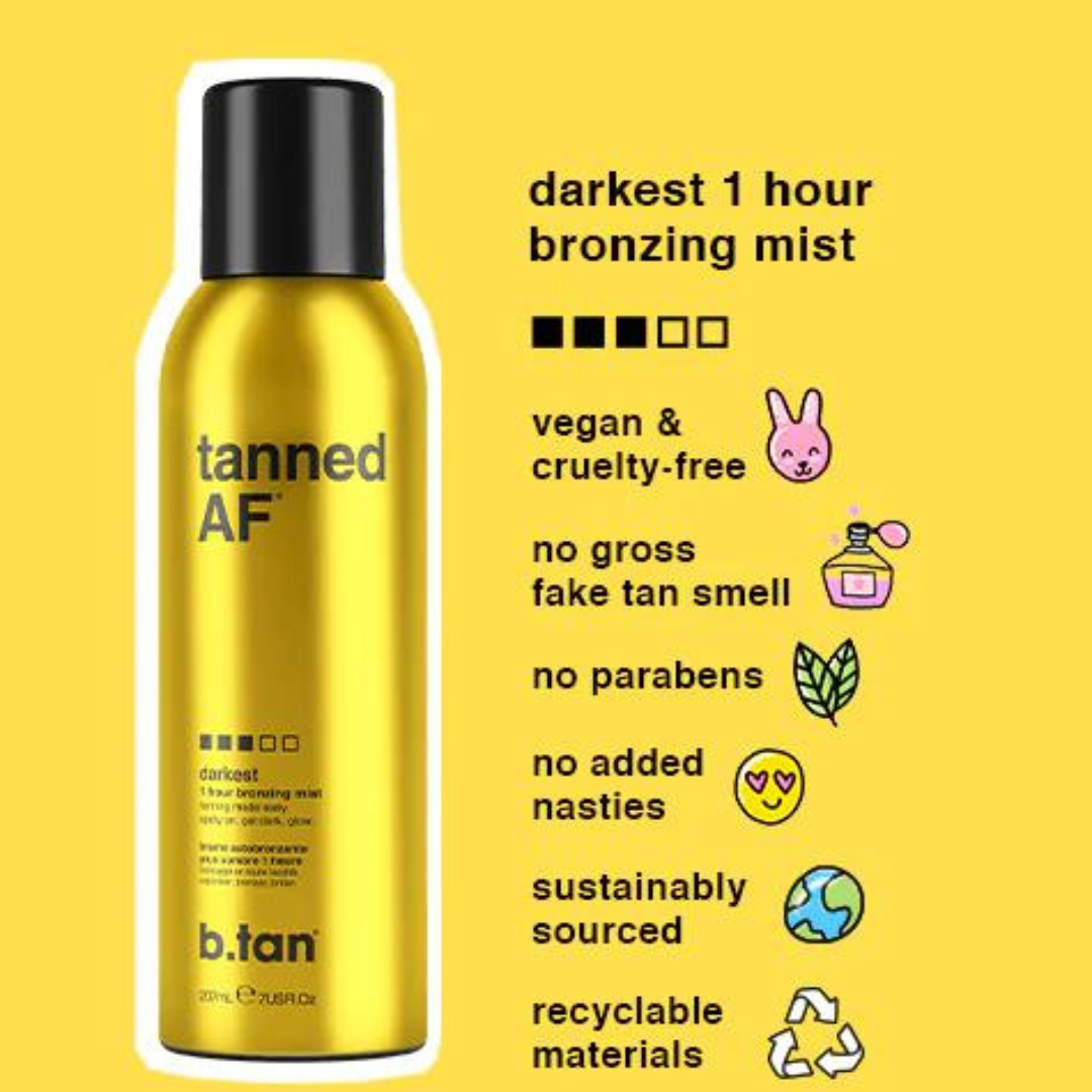 the darkest 1 hour bronzing mist. what comes easy, won’t last forever. but that shouldn’t mean you can’t bask in all its super sexy bronzed up glory while it lasts… let life be as hard as choosing tonight’s outfit or which selfie to upload and just embrace the kind of glow that comes as easy this bronzing mist.