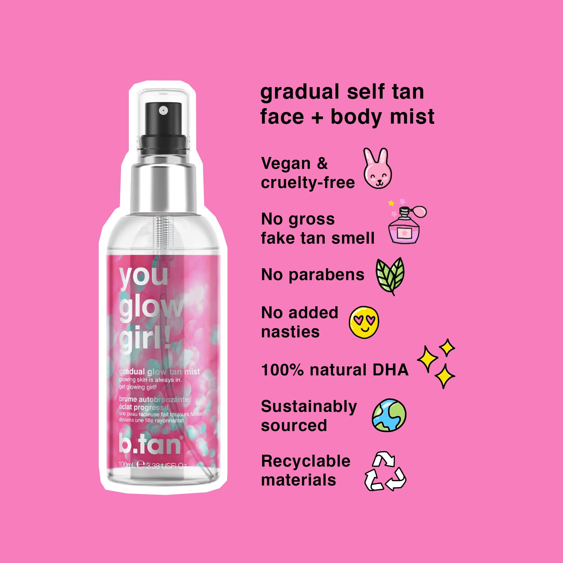 - úðaðu á þig & farðu út í daginn með þessari gradual ljóma-tan misti fyrir bæði andlit og líkama